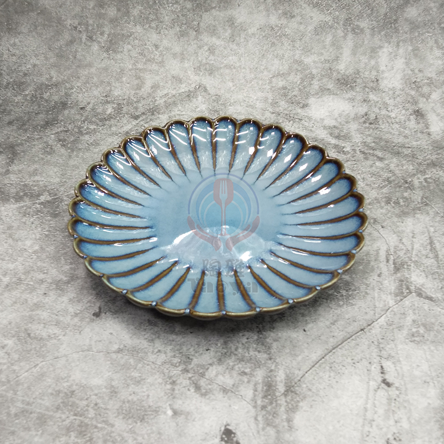 窯變藍6"菊花圓點心盤